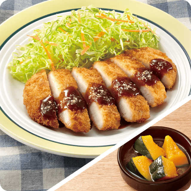 胡麻の香りとんかつ かぼちゃの煮物