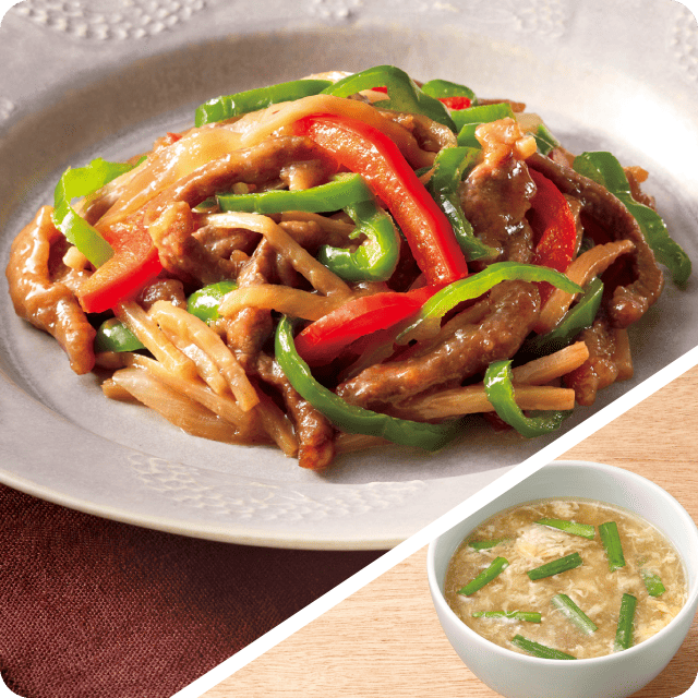 チンジャオロース ニラ玉スープ