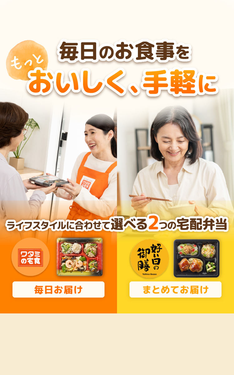 ※病者・高齢者食宅配市場で2024年売上上位3社(ワタミの宅食含む)の冷蔵弁当の普通食商品において、ワタミの宅食「好い日のおかず」1食450円(税込)が最安値。2025年8月末時点。自社調べ。