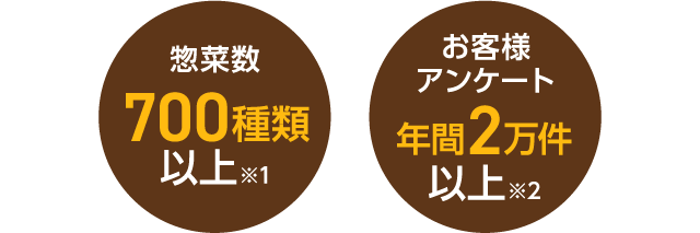 お客さまの声をもとに、味の改良、商品の改善を繰り返し、飽きのこないメニュー作りに努めています。