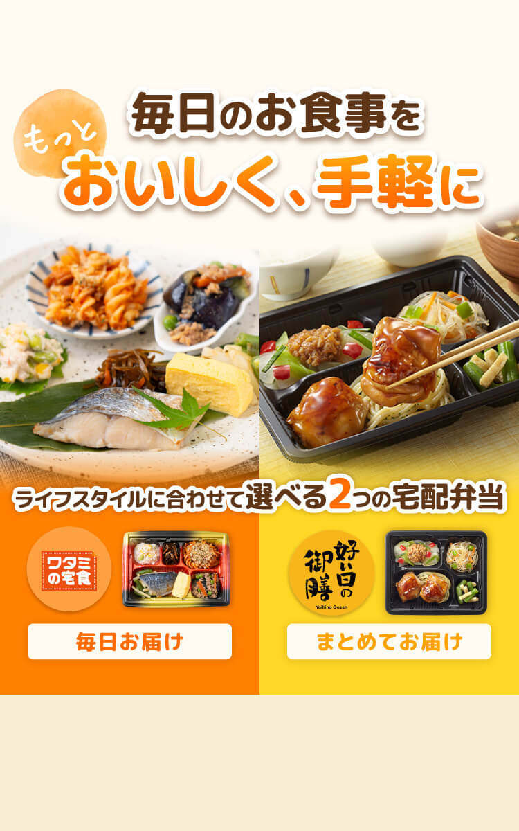 ※病者・高齢者食宅配市場で2024年売上上位3社(ワタミの宅食含む)の冷蔵弁当の普通食商品において、ワタミの宅食「好い日のおかず」1食450円(税込)が最安値。2025年8月末時点。自社調べ。