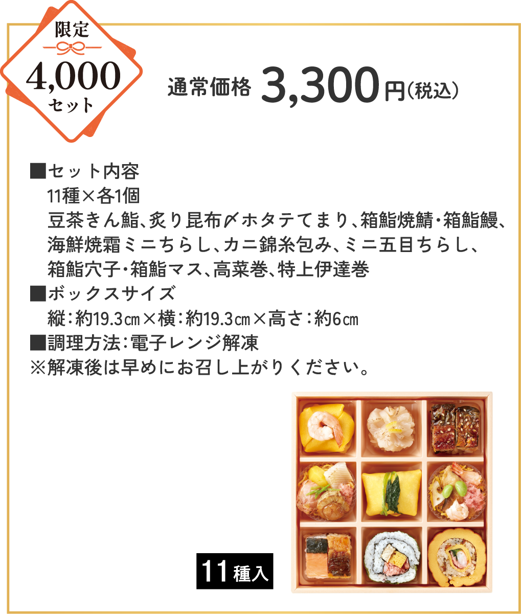 - ※株主様ご優待割引券は「おせち・年末商品」を含むお届け週のお買物合計額が2,500円以上で1世帯につき1枚利用できます。