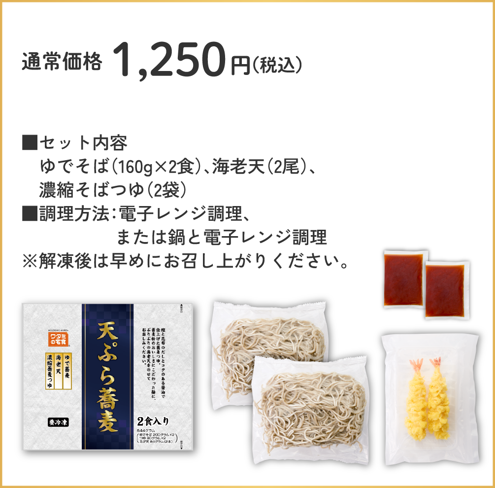 プリプリの海老天をのせてお楽しみいただけます。
