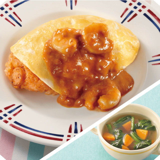 | ぷりぷりえびのトマトクリームオムライス | ||