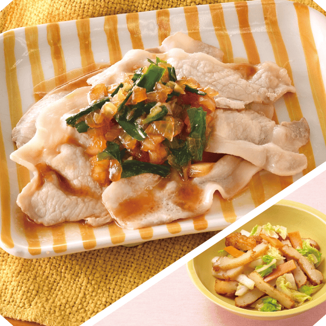 野菜と食べる♪ポークソテー 白菜とさつま揚げの煮びたし
