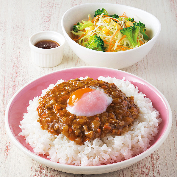 (3)器にご飯を盛って(2)をかけ、温玉をのせる。